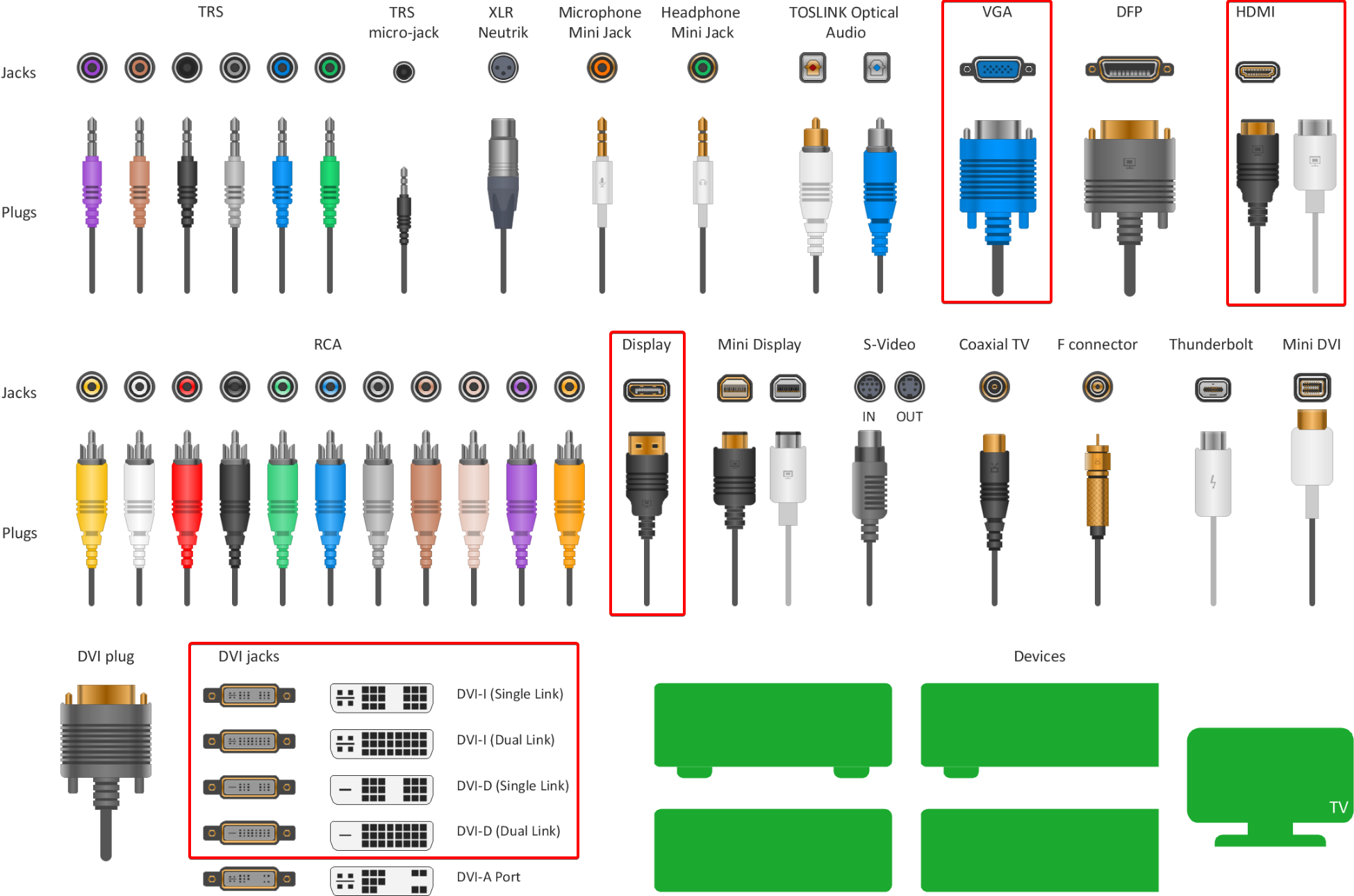 You can Identify your display connection type by unplugging the largest cable connecting your monitor to your PC. Once you have done so look at the connector and find the matching one below, the most common types are indicated in red: